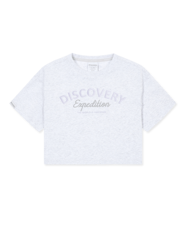 - An essential short-sleeve T-shirt featuring a bold Discovery lettering logo on the chest, designed specifically for girls.