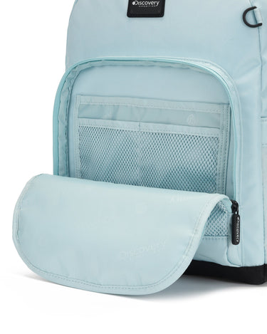 - > You can use the D -ring details in the upper right corner to make customization by hanging true decorations or name tags.