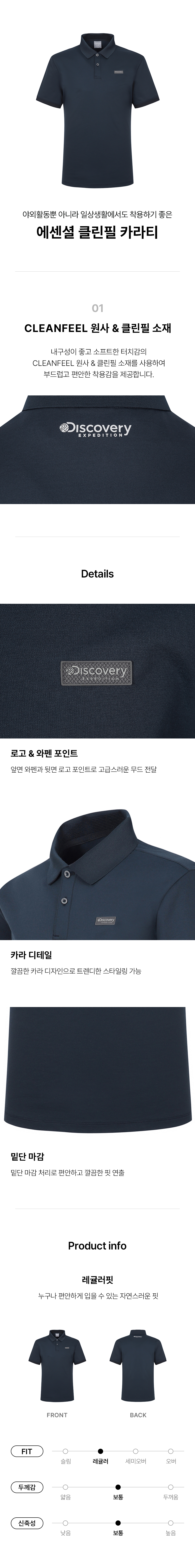 • POINT : 내구성이 좋고 소프트한 터치감의 클린필 소재의 기능성 카라티
