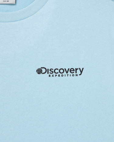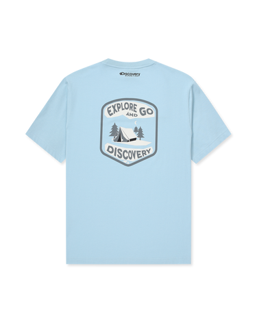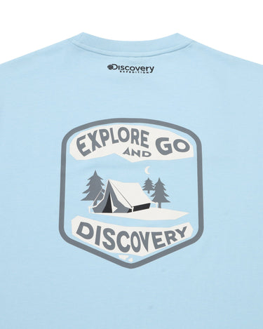 - Discovery Small logo on the chest with a big graphic print on the back