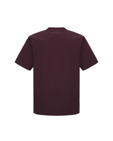 • A functional woven short-sleeve T-shirt featuring a chest logo with an embroidered design and transfer print for added detail.
