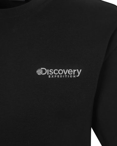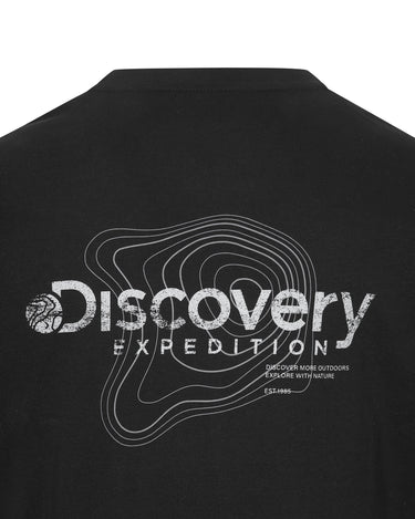 - Short-sleeved T-shirt with the Discovery logo on the chest and the crack technique contour line and logo graphic on the back as points