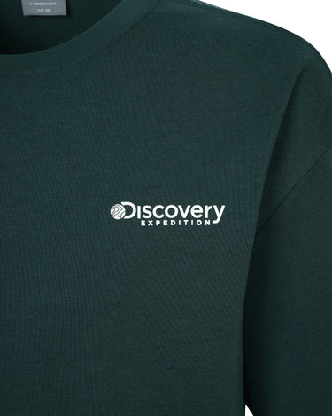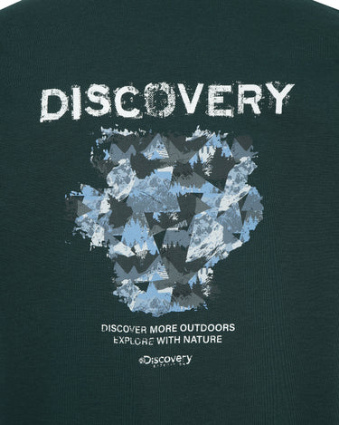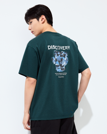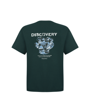 • Washed short-sleeved t-shirt with the Discovery logo on the front and the graphic of a camouflage pattern using the crack technique on the back as a highlight