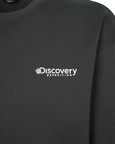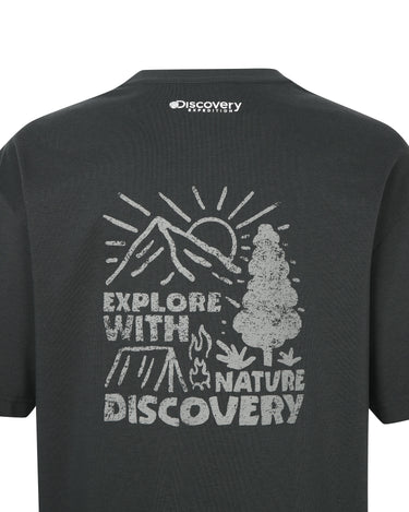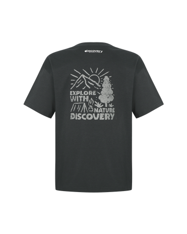 - Washed short-sleeved t-shirt with the Discovery logo on the front and camping outdoor graphics using hand-drawn technique on the back as highlights
