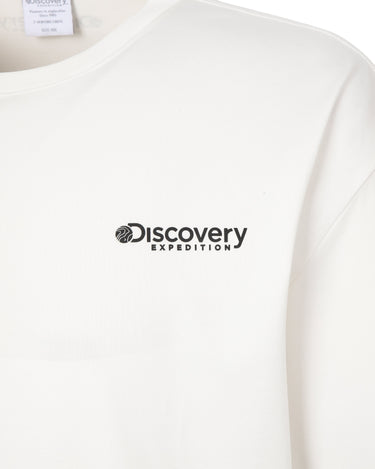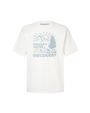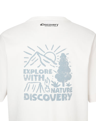 - Washed short-sleeved t-shirt with the Discovery logo on the front and camping outdoor graphics using hand-drawn technique on the back as highlights
