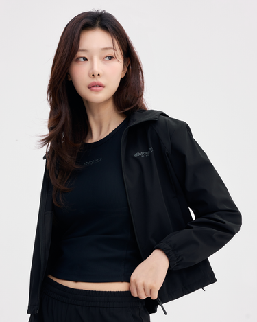 - Semicrop training jacket with a solid and stretching material suitable for outdoor activities