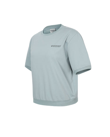 - Semi-cropped short-sleeved sweatshirt that is light and comfortable and made of material that absorbs moisture and dries better than cotton, making it comfortable to wear even in summer
